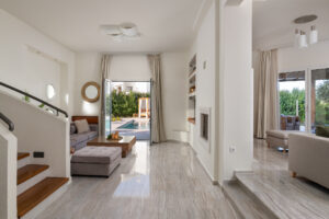 Από την πρώτη στιγμή που θα περάσετε την πόρτα της, θα νιώσετε την προσεγμένη αισθητική και τη φροντίδα στη λεπτομέρεια. Η βίλα διαθέτει τέσσερα ευρύχωρα υπνοδωμάτια, εκ των οποίων το ένα διαθέτει καναπέ-κρεβάτι, ιδανικό για ένα παιδί ή έναν επιπλέον επισκέπτη. Με τρία πολυτελή μπάνια και ένα επιπλέον WC, καθώς και δύο ζεστά και ευρύχωρα σαλόνια, η βίλα προσφέρει άνεση και ανεξαρτησία σε κάθε επισκέπτη.