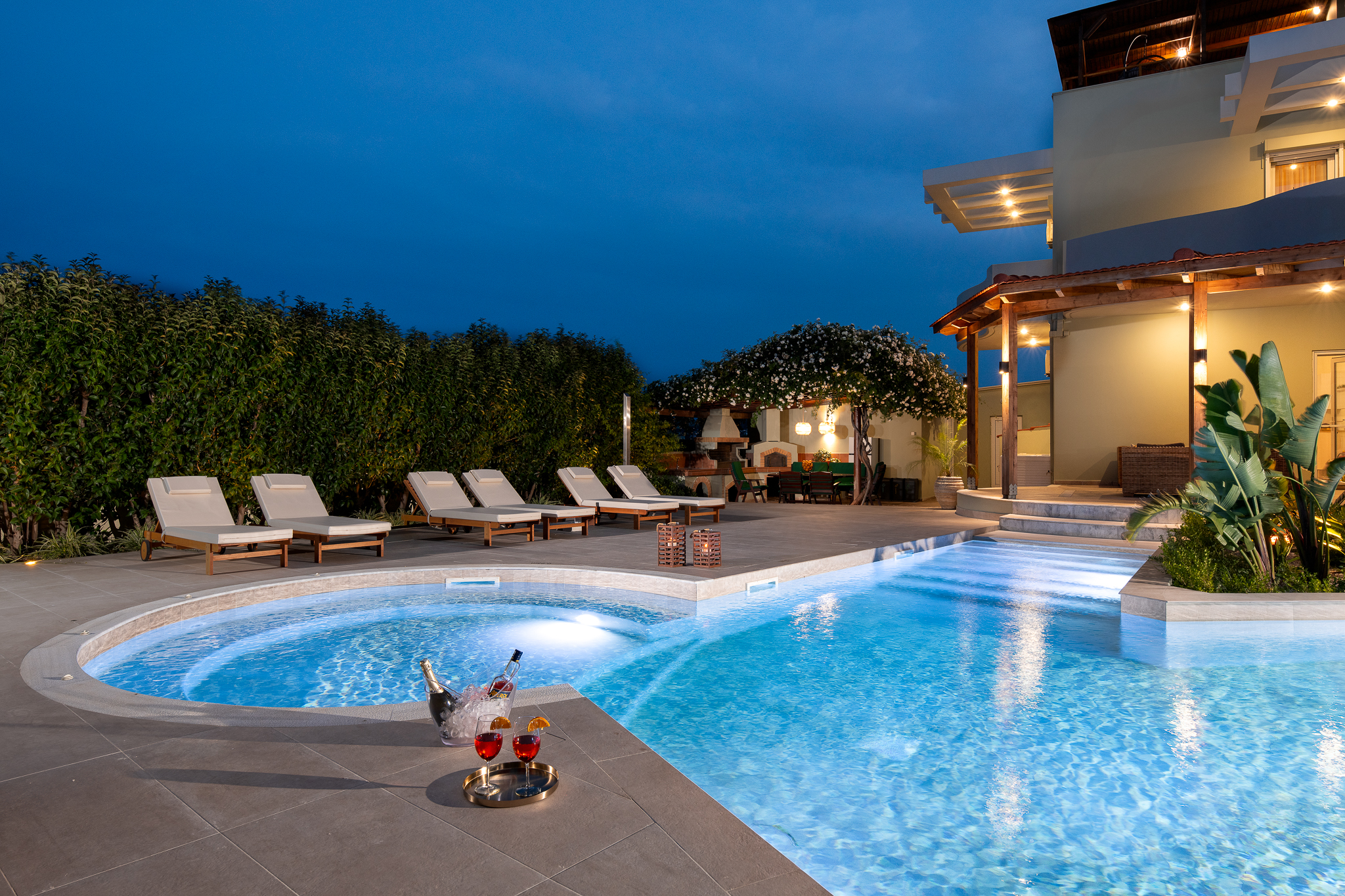 Η ιδιωτική πισίνα με υδρομασάζ σας προσκαλεί για στιγμές απόλυτης χαλάρωσης, ενώ το πλήρως εξοπλισμένο γυμναστήριο σάς επιτρέπει να παραμένετε ενεργοί. Η κουζίνα, τα κλιματιζόμενα δωμάτια, το πλυντήριο, οι Smart τηλεοράσεις, το Wi-Fi και το ιδιωτικό γκαράζ συμπληρώνουν μια διαμονή υψηλών προδιαγραφών.